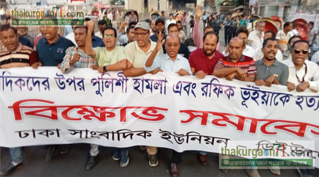 টিয়ারশেলের আঘাতে সিনিয়র সাংবাদিক রফিক ভূঁইয়া নিহতের প্রতিবাদে ডিইউজের বিক্ষোভ