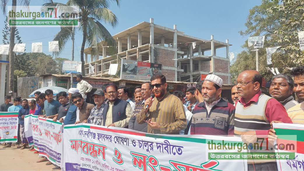 রাণীশংকৈলে বন্ধ স্থলবন্দর চালুর দাবীতে মানববন্ধন ও লং মার্চ