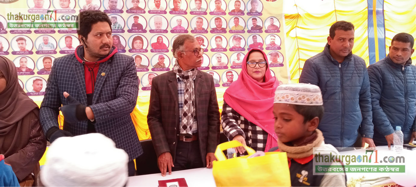 রাণীশংকৈলে আদর্শ মানবিক প্রবাসী সংগঠনের উদ্যোগে কম্বল ও কোরআন শরীফ বিতরণ