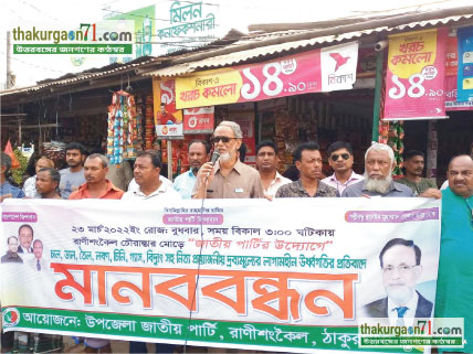 রাণীশংকৈলে দ্রব্যমূল্যের লাগামহীন উর্ধগতির প্রতিবাদে জাতীয় পার্টির মানববন্ধন