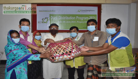 পীরগঞ্জে দরিদ্র নারীদের মাঝে উন্নত জাতের হাঁস বিতরণ