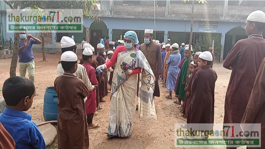 রাণীশংকৈলে সাবেক এমপি লিটার মাস্ক বিতরণ