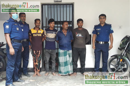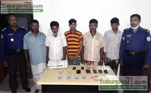 রাণীশংকৈলে জুয়ার আসর থেকে ৫ জুয়াড়ি আটক