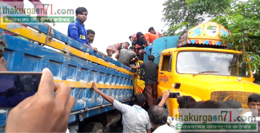 রাণীশংকৈল নেকমরদ মহাসড়কে দুটি ট্রাকের মুখোমুখি সংঘর্ষে গুরুত্বর আহত -১