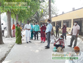 রানীশংকৈল পৌরসভায় ৮০০ জনের মাঝে ত্রাণ সামগ্রী বিতরন